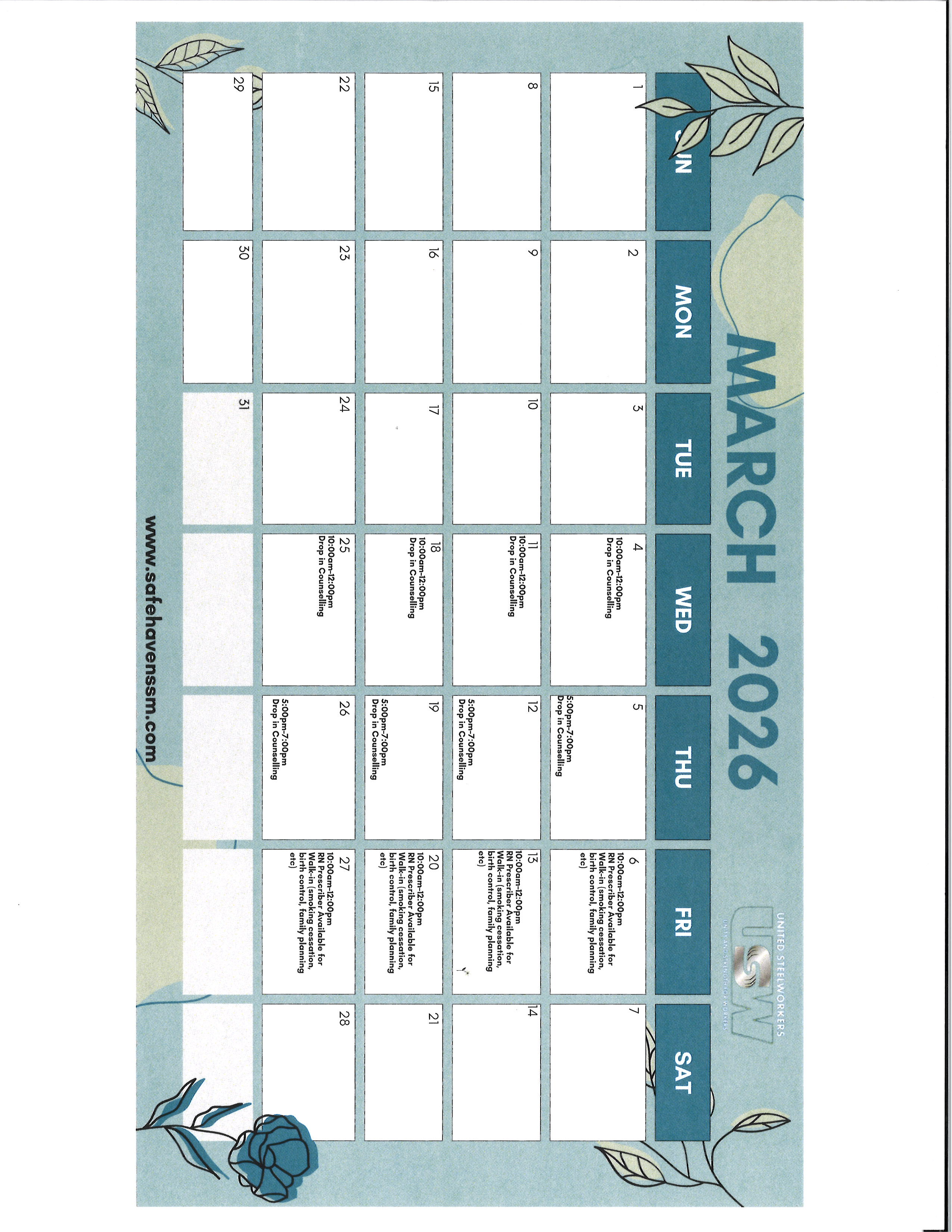 March Drop in Counselling - Safe Haven